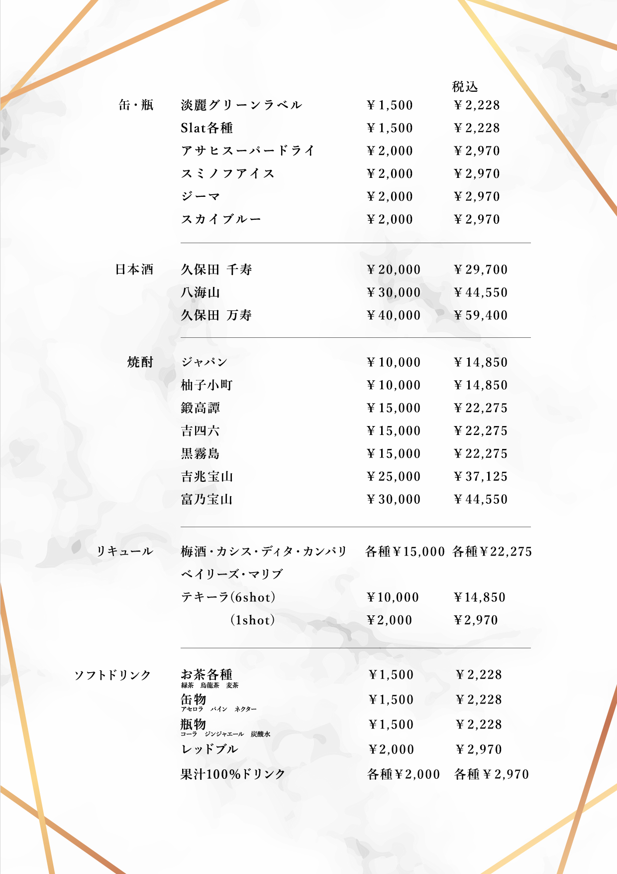 ドリンク・フードメニュー